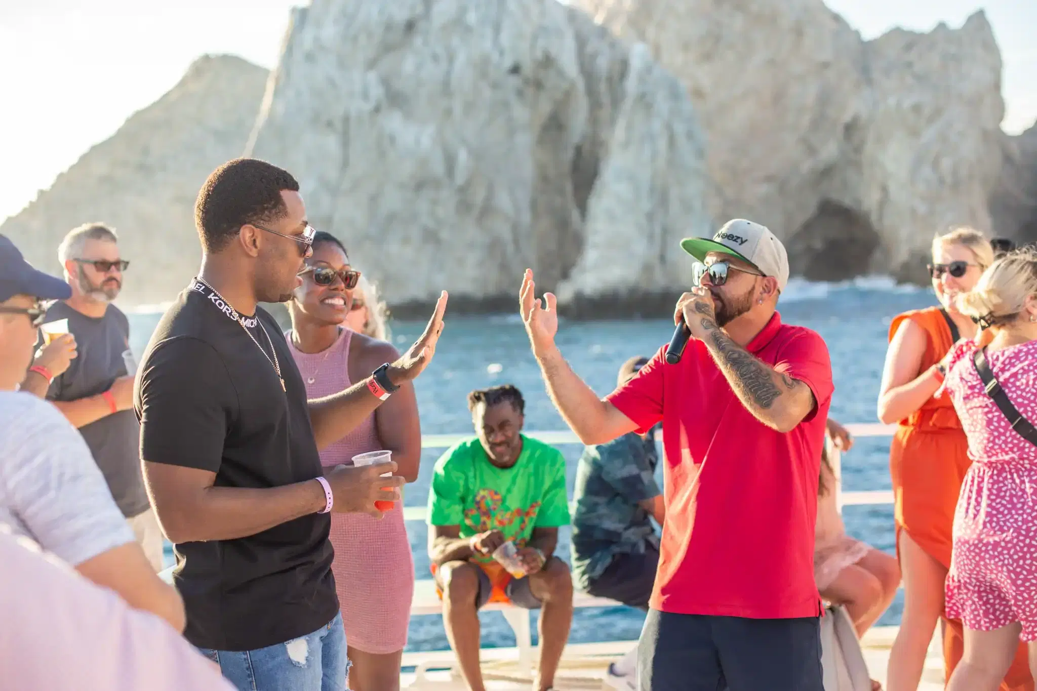 Experience a unique adventure in Los Cabos aboard the Pez Gato Party Cruise, a two-hour tour designed especially for those looking to enjoy a lively party atmosphere. The journey begins by setting sail from the Cabo San Lucas Marina, visiting iconic landmarks such as Lover’s Beach, The Arch, and the sea lion colony, before continuing through the waters of the Pacific Ocean and the Sea of Cortez, offering breathtaking views throughout the ride. Onboard, you’ll enjoy an open national bar, light snacks, music, and a festive vibe while watching the sunset. This tour is exclusively for guests 18 and older, as the atmosphere depends on the passengers onboard: it can be laid-back and relaxed, or it can turn up into a real party (yes, even with twerking!). Whether you prefer to unwind with a drink in hand or let yourself get carried.